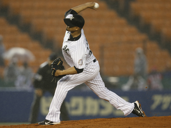 投手 内 4番 李大浩 右飛 高めの真っ直ぐを打つもライトフライ 1アウト |