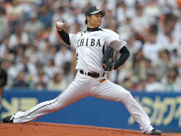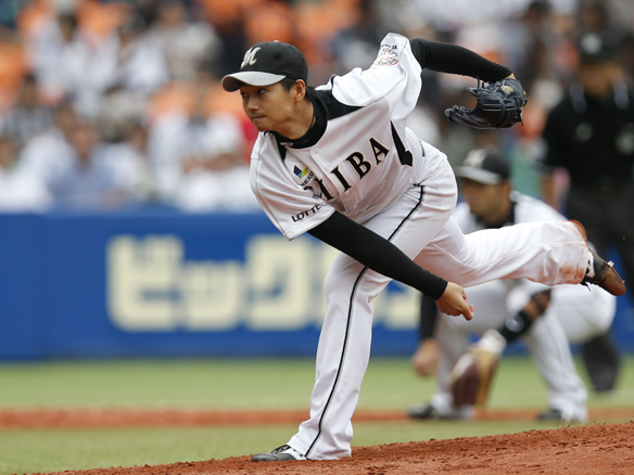 投手 金子千尋 ピッチャー金子千尋に代わって佐藤達がマウンドにあがる |