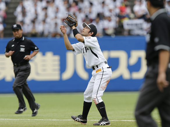 投手 金子千尋 6番 鈴木 中安 センターへのヒットを放つ 1塁 |
