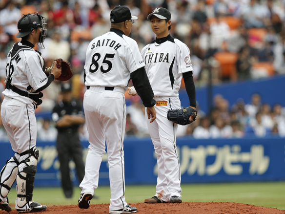 投手 唐川 ピッチャー唐川に代わってレデズマがマウンドにあがる |