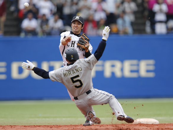1番 平野恵 二ゴ ど真ん中のスライダーを打つもセカンドゴロ 1アウト2塁 |