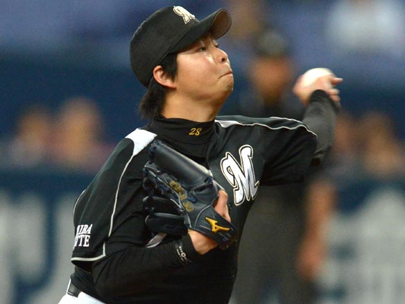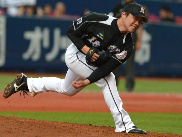 6番 G.G.佐藤 四球 外角のストレートを見送り四球を選ぶ 1,2塁 |