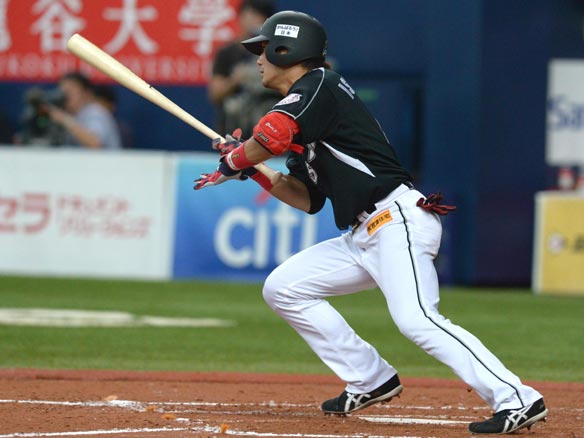 5番 バルディリス 左安 レフトへのヒットで出塁 |