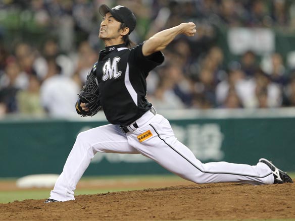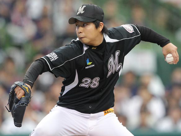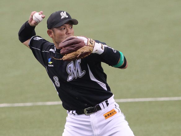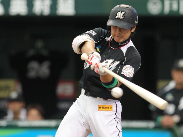 1番 ヘルマン 四球 外角のスライダーを見送りフォアボール。ロッテ、満塁のピンチをまねく 満塁 |