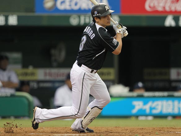 6番 サブロー 右安 ライトへのヒットで出塁 1塁 |