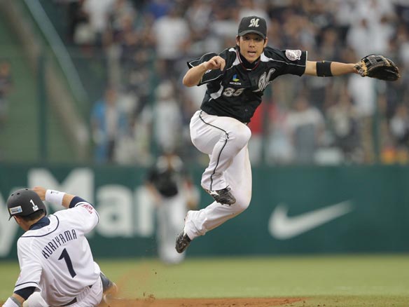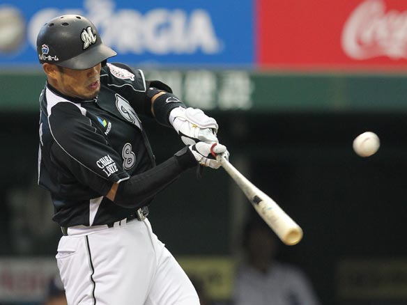 福浦が低めの変化球を巧みにライト前に運ぶ!