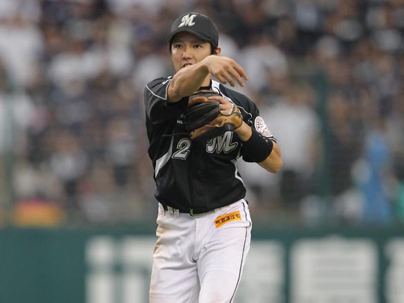 7番 福浦 二ゴ つまった打球はセカンドへの平凡なゴロとなる 3アウトチェンジ |