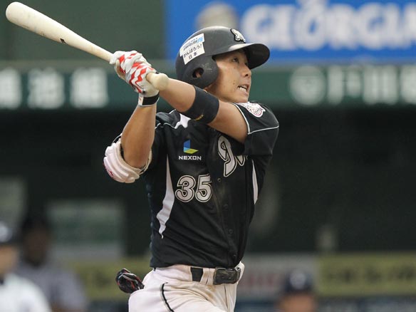 3番 井口 四球 一度もバットを振ることなくストレートのフォアボールを選ぶ 1塁 |
