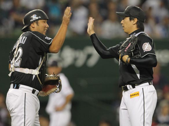 伊志嶺→代打:ブラゼル 1塁サブロー→代走:加藤 |