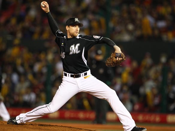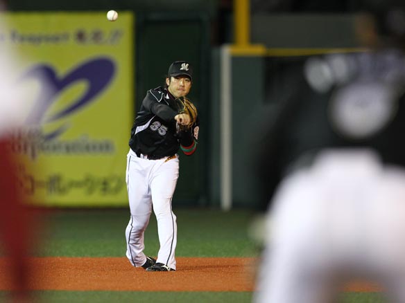 投手 則本 9番 里崎 三邪飛 ファウルフライをマギー(三)が捕球してバッターアウト 1アウト |
