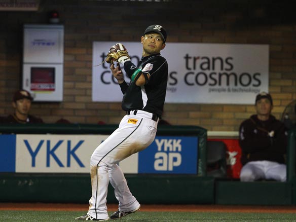 ファールフライを掴み守備でもチームを盛り立てる今江