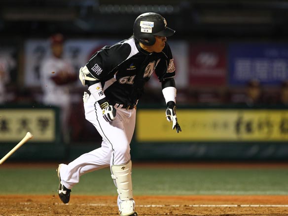 角中が二遊間をしぶとく破る安打でチャンスメーク!