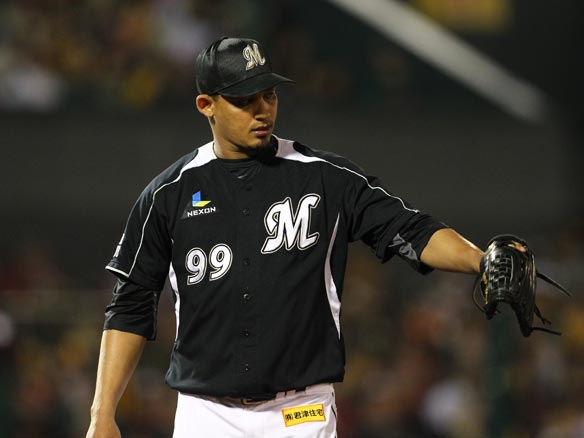 投手 カルロス・ロサ ピッチャーカルロス・ロサに代わって益田がマウンドにあがる |