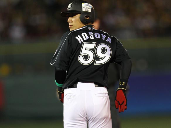 投手 益田 ピッチャー益田に代わって内がマウンドにあがる 守備交代:レフト加藤 守備変更:細谷→ファースト |