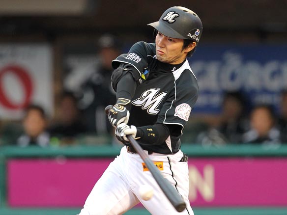 5番 角中 左安 レフトへのヒットを放つ 1塁 |