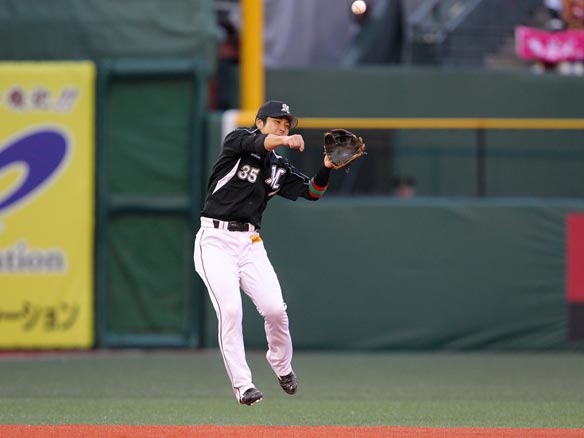 7番 松井 左邪飛 ファウルフライを角中(左)が捕球してバッターアウト 2アウト |