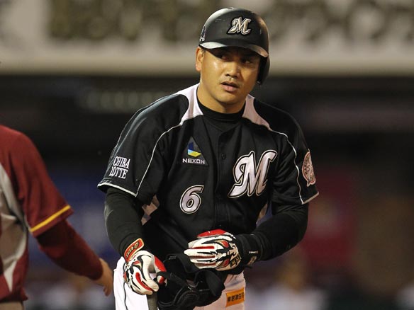 9番 里崎 中飛 低めのカーブを打つもセンターフライ 2アウト |
