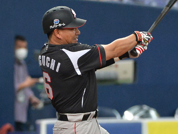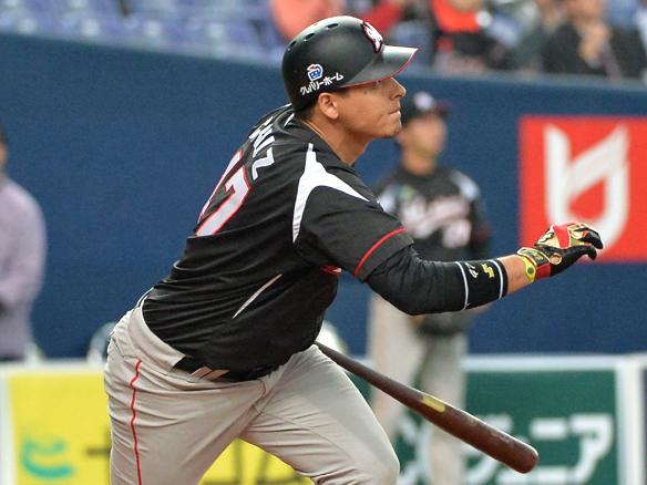 2番 平野恵 右安 ライトへのヒットを放つ 1塁 |