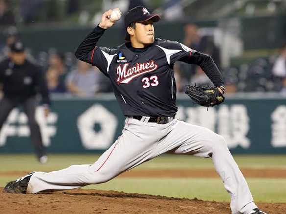 3番 栗山 四球 内角の真っ直ぐを見送りフォアボール。ロッテ、満塁のピンチをまねく 満塁 |