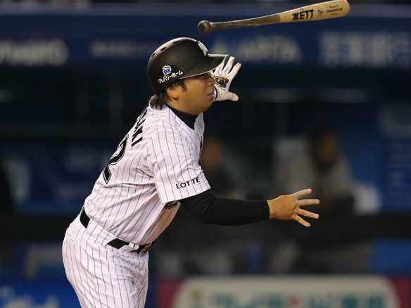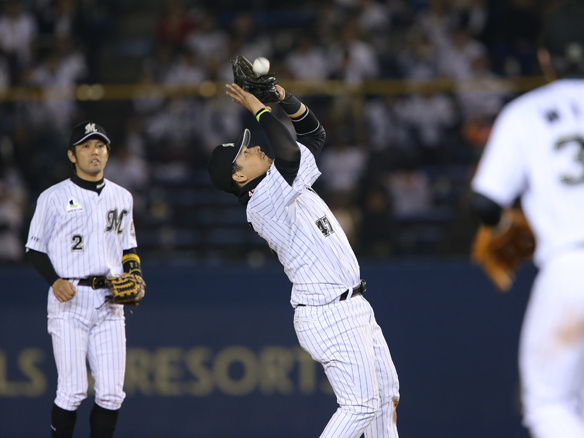 8番 里崎 右安 ランナー3塁からライトへのタイムリーヒット ロ3-1オ 1塁 ![]() 1