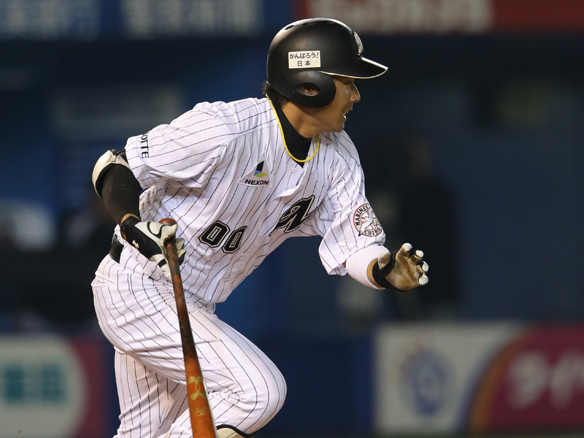 6番 松田 左安 ランナー1,2塁の1-0からレフトへのタイムリーヒット ロ0-2ソ 1,2塁 ![]() 0