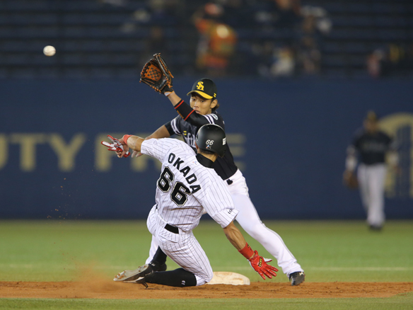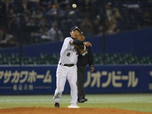 4番 角中 遊邪飛 ファウルフライを今宮(遊)がつかんでバッターアウト 2アウト |
