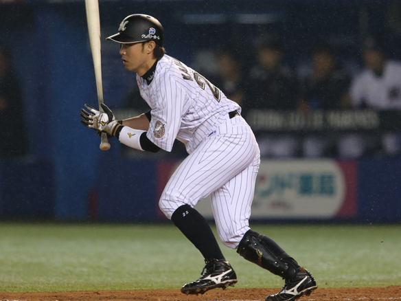 投手 岩嵜 1番 荻野貴 中安 センターへのヒットを放つ 1塁 |