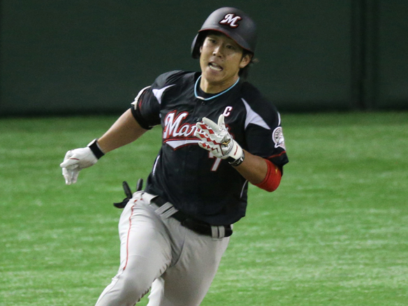 6番 角中 左安 レフトへのヒットを放つ 1塁 |
