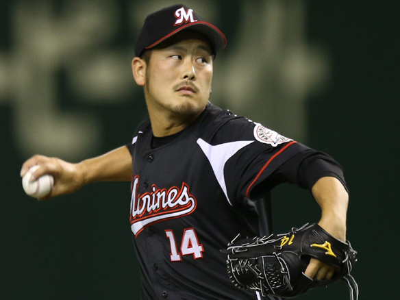 8番 ロペス 四球 外角のフォークボールを見送りフォアボールを選ぶ 1,3塁 |