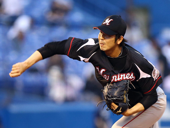 投手 大嶺祐 4番 川端 一ゴ 内角のストレートを打つもファーストゴロ 1アウト  |