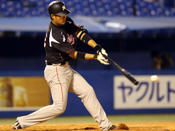 投手 大嶺祐 7番 田中浩 右安 ライトへのヒット 1塁  |