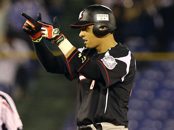 3番 角中 中安 センターへのヒットを放つ 1塁  |