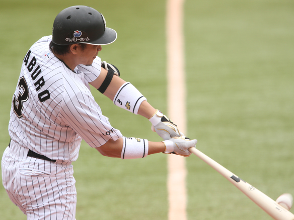 5番 T-岡田 左安 レフトへのヒットで出塁 1塁 |