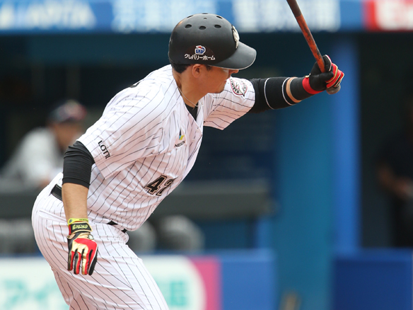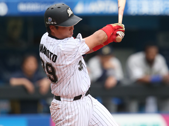 5番 サブロー 右犠飛 1アウト満塁からライトへの犠牲フライを放つ ![]() 1