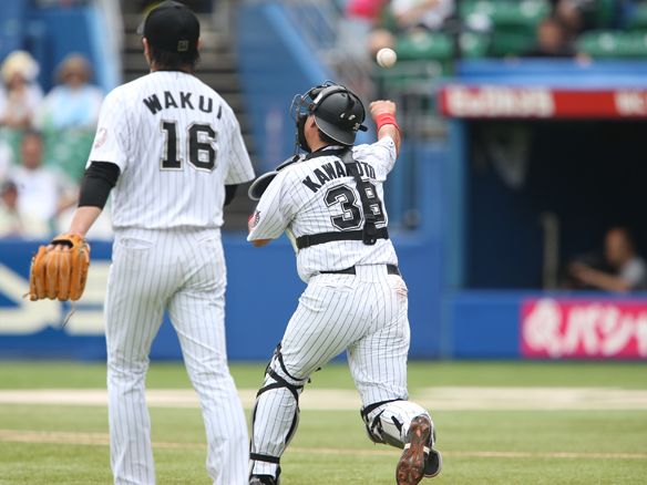 投手 涌井 守備変更:福浦→ファースト 守備変更:岡田→センター 守備変更:金澤→キャッチャー |