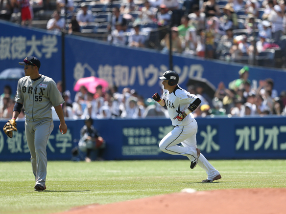 4番 糸井 左安 2アウト2塁の2-2からレフトへのタイムリーヒット ロ2-1オ 1塁 ![]() 2