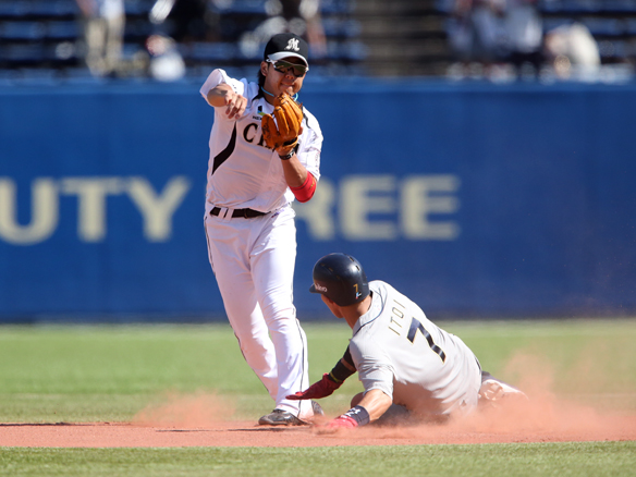 2番 鈴木 三邪飛 ファウルフライをヘルマン(三)が捕球してバッターアウト 2アウト  |