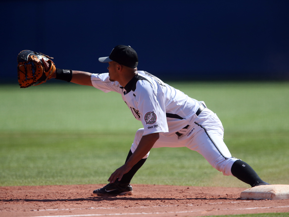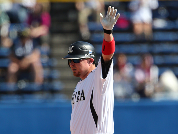 4番 ブラゼル 左中二 フェンス直撃のツーベースを放つ 2塁  |