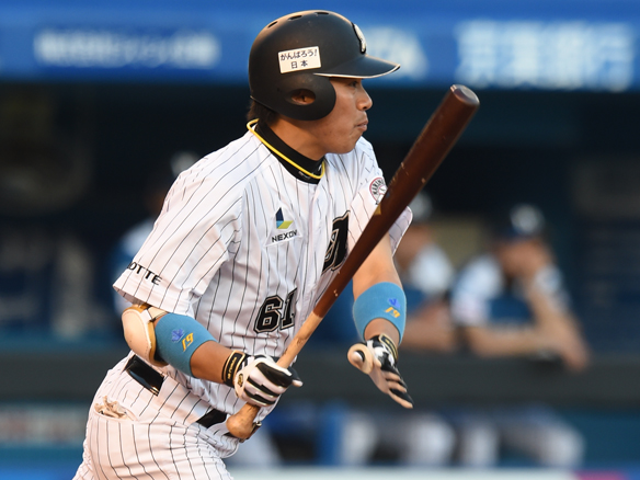 7番 石川慎 中安 1アウト3塁の2-2からセンターへのタイムリーヒット ロ0-4日 1塁 ![]() 0