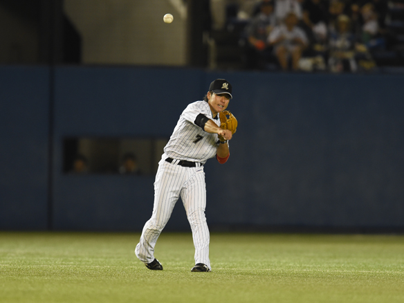 藤岡は打球をはじくも落ち着いてゴロを処理する