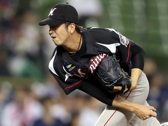 投手 大嶺祐 3番 栗山 中安 センターへのヒットを放つ 1塁 |