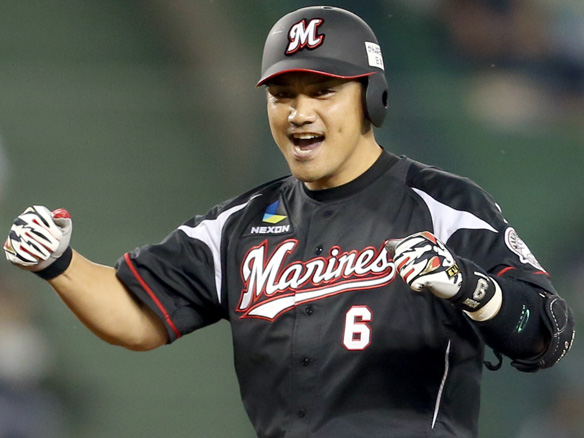 3番 井口 左中二 1アウト2,3塁の3-2からレフトへのタイムリーツーベースでロッテ逆転! 西6-7ロ 2塁 ![]() 6