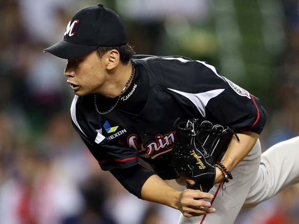 投手 金森 4番 メヒア 空三振 外角のフォークボールに空振り三振 1アウト |