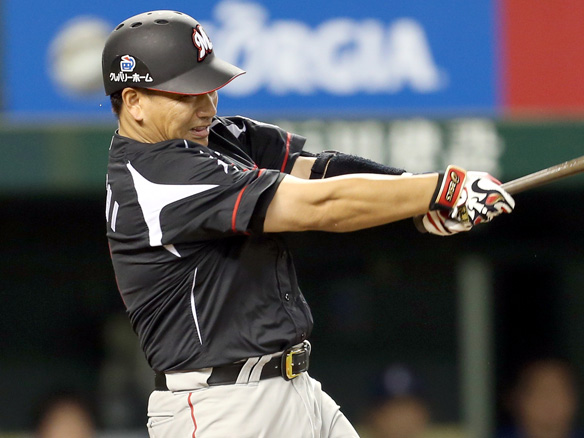 2番 角中 中安 ランナーフルベースからセンターへのタイムリーヒット 西5-2ロ 満塁 ![]() 5