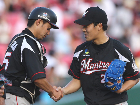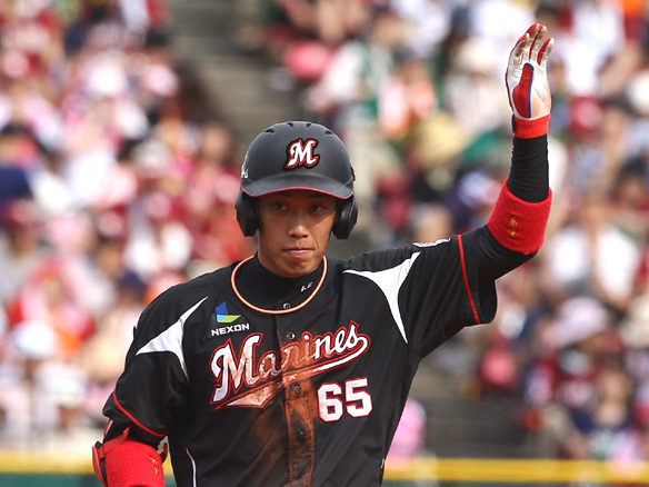 投手 クルーズ 4番 井口 左越安 ランナー3塁からレフトへのタイムリーヒット 楽1-4ロ 1塁 ![]() 0