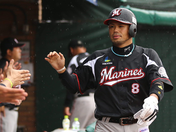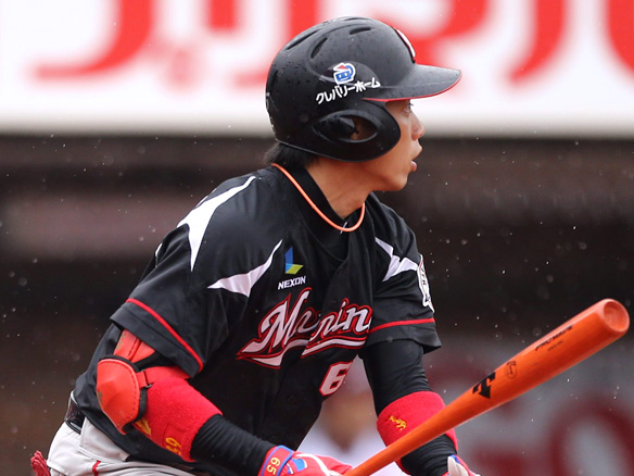 投手 涌井 1番 哲朗 右安 ライトへのヒットを放つ 1塁 |