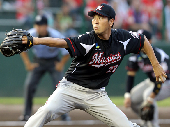 投手 金無英 5番 今江 中飛 外角のストレートを打つもセンターフライ 1アウト |