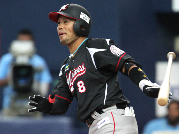 3番 角中 中安 センターへのヒットを放つ 1塁 |