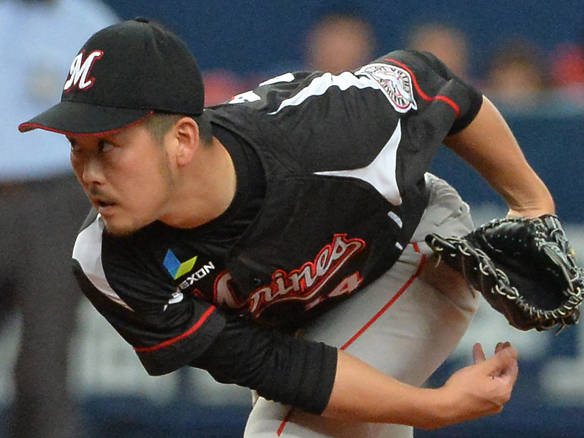 投手 金子千尋 7番 クルーズ 空三振 外角の落ちる球に空振り三振 1アウト |
