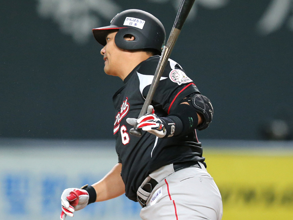3番 陽 右安 ライトへのヒットを放つ 1塁 |